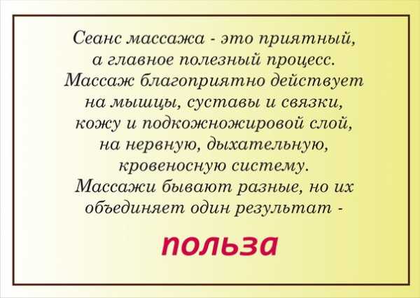 ΠΠ°ΠΊ ΠΆΠ΅ Π²Π»ΠΈΡΠ΅Ρ ΠΌΠ°ΡΡΠ°ΠΆ Π½Π° ΠΎΡΠ³Π°Π½ΠΈΠ·ΠΌ ΡΠ΅Π»ΠΎΠ²Π΅ΠΊΠ°? ΠΒ ΡΠ΅ΠΌ Π΅Π³ΠΎ ΠΏΠΎΠ»ΠΎΠΆΠΈΡΠ΅Π»ΡΠ½ΡΠ΅ ΡΡΠΎΡΠΎΠ½Ρ? Π‘Π΅ΠΉΡΠ°Ρ ΠΌΡ Ρ Π²Π°ΠΌΠΈ ΡΠ°ΡΡΠΌΠΎΡΡΠΈΠΌ Π²Π»ΠΈΡΠ½ΠΈΠ΅ ΠΌΠ°ΡΡΠ°ΠΆΠ° Π½Π° ΠΎΡΠ³Π°Π½ΠΈΠ·ΠΌ ΡΠ΅Π»ΠΎΠ²Π΅ΠΊΠ°.