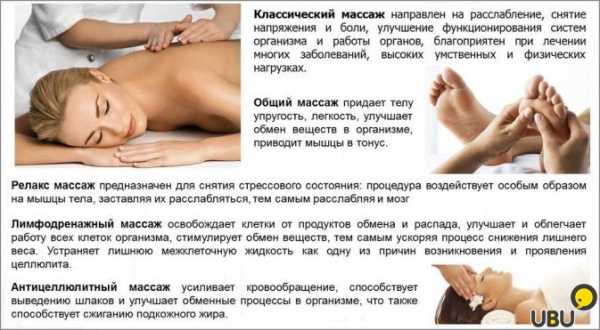 ΠΡΠΎΡΠ΅ΡΡΠΈΠΎΠ½Π°Π»ΡΠ½ΠΎ Π²ΡΠΏΠΎΠ»Π½Π΅Π½Π½ΡΠΉ ΠΌΠ°ΡΡΠ°ΠΆ Π±Π»Π°Π³ΠΎΠΏΡΠΈΡΡΠ½ΠΎ Π²Π»ΠΈΡΠ΅Ρ Π½Π° Π²Π΅ΡΡ ΠΎΡΠ³Π°Π½ΠΈΠ·ΠΌ.Β Π‘ΡΡΠ΅ΡΡΠ²ΡΡΡ ΠΌΠ½ΠΎΠΆΠ΅ΡΡΠ²ΠΎ Π²ΠΈΠ΄ΠΎΠ² ΠΌΠ°ΡΡΠ°ΠΆΠ°: Π»Π΅ΡΠ΅Π±Π½ΡΠΉ, ΡΠΏΠΎΡΡΠΈΠ²Π½ΡΠΉ, Π±Π°Π½ΠΎΡΠ½ΡΠΉ, ΡΠ΅ΡΠ»Π΅ΠΊΡΠΎΡΠ½ΡΠΉ, ΠΌΠ΅Π΄ΠΎΠ²ΡΠΉ. ΠΠΎ Π²ΡΠ΅ ΠΎΠ½ΠΈ ΠΎΡΠ½ΠΎΠ²Π°Π½Ρ Π½Π° ΠΎΠ΄Π½ΠΈΡ ΠΈ ΡΠ΅Ρ ΠΆΠ΅ ΠΏΡΠΈΠ½ΡΠΈΠΏΠ°Ρ ΡΠΈΠ·ΠΈΠΎΠ»ΠΎΠ³ΠΈΠΈ ΡΠ΅Π»ΠΎΠ²Π΅ΠΊΠ°.