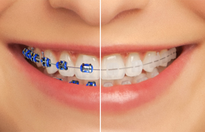 Существуют также керамические брекеты белого цвета. Прозрачные резинки могут показаться наименее заметным вариантом, но в промежутках между посещениями прозрачные резинки могут быть окрашены кофе, чаем, красным вином или безалкогольными напитками.