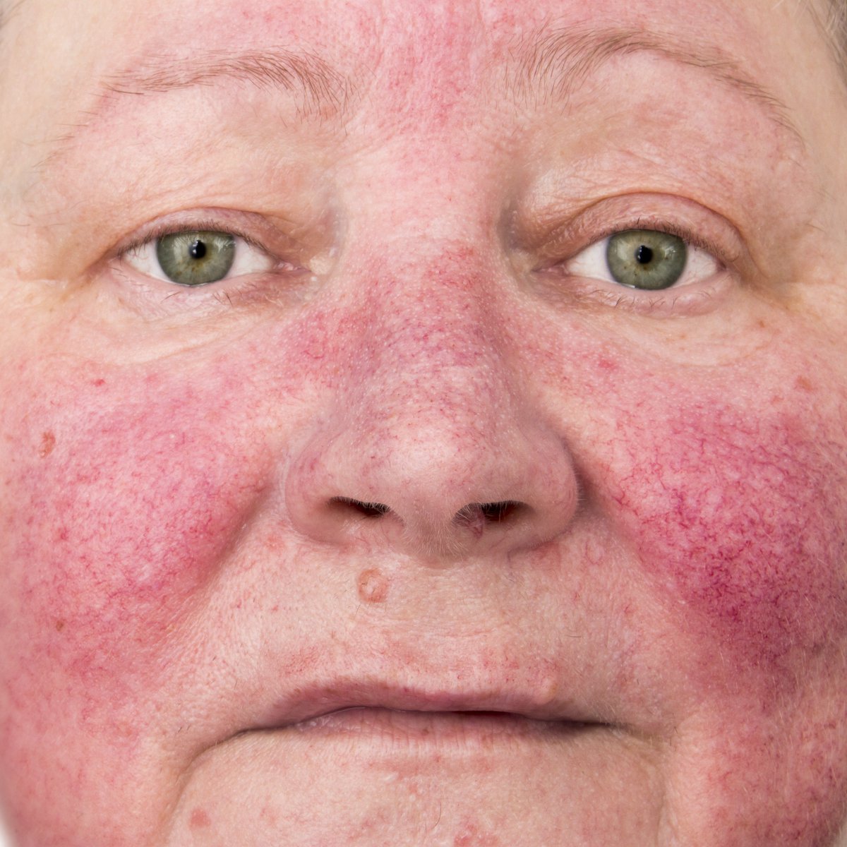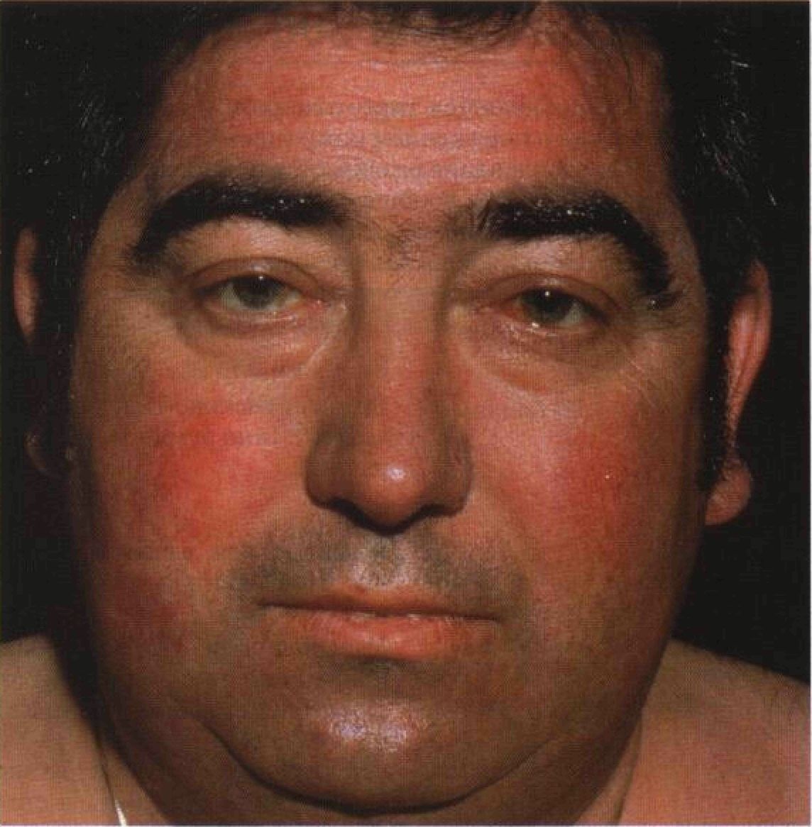 - Симптом изменения кожных покровов. Эпидермис в результате развития синдрома становится тонким и сухим, он сильно шелушится и под ним становится явно выражен рисунок сосудов у женщин. Кожа настолько тонкая и хрупкая, что возможно образование кровоподтеков даже в результате незначительного травмирования – это бывает в 40% при данном синдроме. Данному синдрому характерны угревые высыпания на коже и гиперпигментация у женщин. Любые ранки и повреждения очень плохо заживают, может быть даже отмечено расползание швов после оперативного вмешательства. Слизистые оболочки легко подвергаются воздействию грибковых инфекций (лишай, стоматит и прочие).