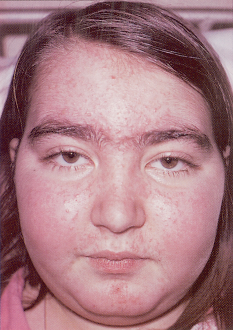 Наряду с этим отмечается гиперпигментация кожных покровов в местах трения (шея, локтевые суставы, подмышечные впадины). У женщин часто наблюдается рост волос (гирсутизм) на лице и груди.