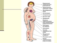 В результате снижения иммунитета развиваются гнойничковые (акне) или грибковые поражения кожи и ногтей, трофические язвы голеней, хронический и трудно поддающийся лечению пиелонефрит. Ярко выражено нарушение мозговой деятельности (энцефалопатия) в виде эмоционально-личностных сдвигов: от нарушения настроения, сна и до выраженных психозов.