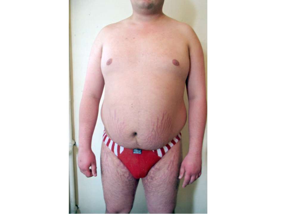 «Происходит перераспределение жировой ткани — она с избытком откладывается в области туловища, живота, груди, плечевого пояса, спины, то есть это такое непропорциональное ожирение. Кожа становится сухой, истончённой. Пациент отмечает у себя общую слабость, сниженную работоспособность, головные боли. На коже живота, плечевого пояса, внутренней поверхности бёдер, ягодицах могут появляться разрывы, они ярко багровые, достаточно широкие.