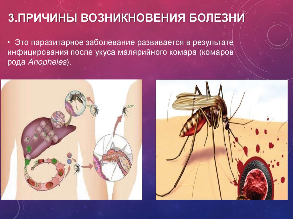 Суть болезни в том, что во время укуса через кровь в печень попадают паразиты – малярийные плазмодии. Они разрушают эритроциты и продолжают размножаться, поражая все новые и новые кровяные клетки.