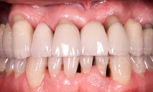 Такие заболевания как пародонтит и пародонтоз поражают десны. Появляется боль и кровоточивость десен, болезненность при сжимании челюстей и пережевывании пищи. Многие пациенты часто путают и не понимают, что именно болит – десна или зуб. Одновременно данные патологии приводят к тому, что оголяются корни зубов, из-за чего появляется их повышенная чувствительность. При запущенном или стремительном течении инфекция может пробраться в зубную пульпу через верхушки корней – так можно потерять как один зуб, так и несколько или даже все в ряду.