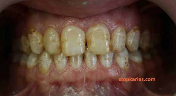 У данного пациента множественный кариес, пародонтит, переодонтит нескольких зубов, хронические пульпиты, патология прикуса, повышенная стираемость зубов, клиновидные дефекты. Не правильно расположенные нижние зубы мудрости.