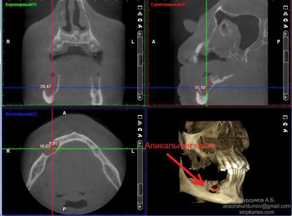 Радикулярная/апикальная кита на компьютерной томограмме.