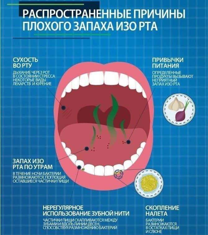 Помимо серообразующих бактерий, которые колонизируют заднюю часть языка, другими основными причинами неприятного запаха изо рта являются: