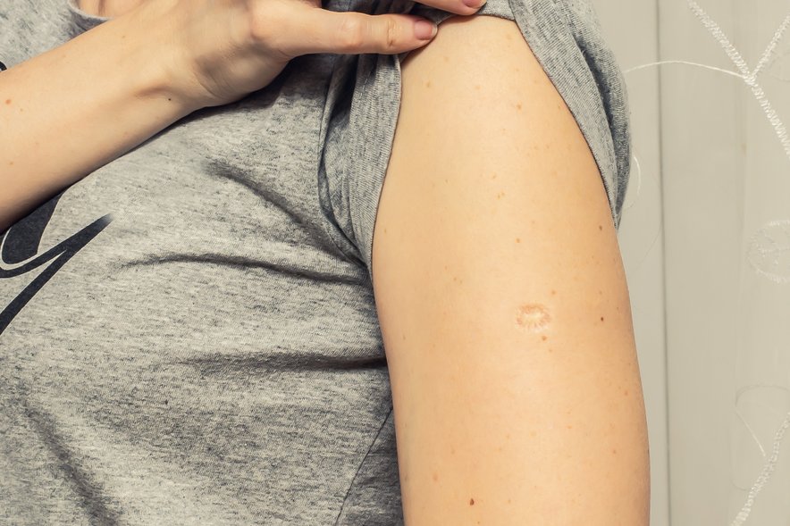 С прививкой от оспы, которая оставляет след на плече, многие путают последствия БЦЖ — от нее тоже остается небольшой шрам. Но если после вакцинации от оспы остается 2–3 неровных следа размером до 10 мм, то шрам от БЦЖ только один, он меньше и более ровный.
