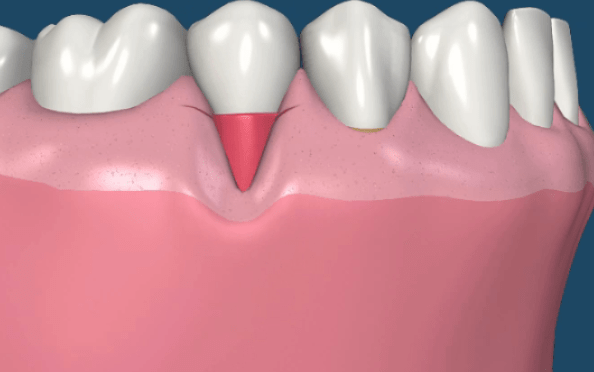 Итак, рецессия десны — это состояние, когда наблюдается уменьшение объема мягких тканей в области корня зуба, что приводит к его оголению.