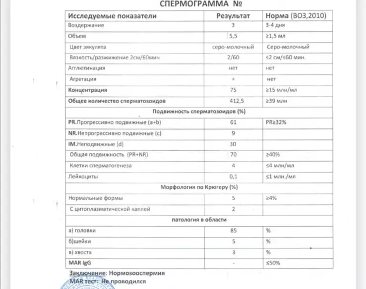 По рекомендации ВОЗ в качестве эталона были приняты так называемые референсные значения. Их получили, протестировав большое количество здоровых молодых мужчин, у чьих партнерш в течение года наступила беременность.