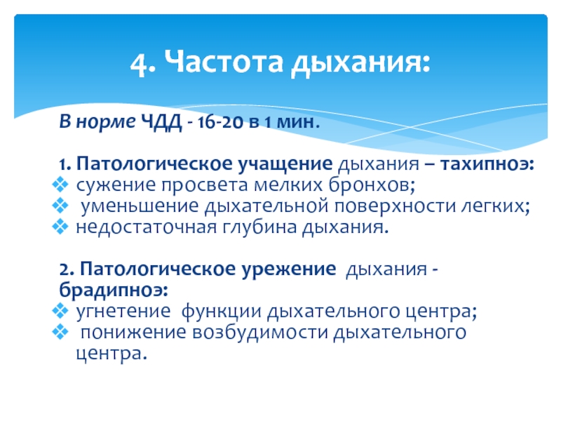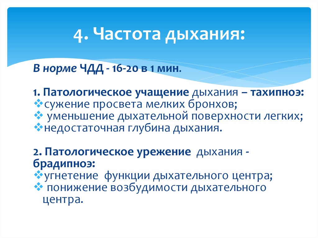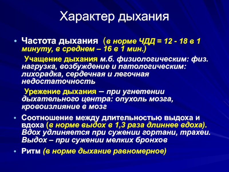 ΠΠ½ΠΎΠ³Π΄Π°, ΠΎΠ΄Π½Π°ΠΊΠΎ, ΡΠ°Π·Π»ΠΈΡΠ½ΡΠ΅ Π·Π°Π±ΠΎΠ»Π΅Π²Π°Π½ΠΈΡ, ΡΡΠ°Π²ΠΌΡ ΠΈ Π²Π΅ΡΠ΅ΡΡΠ²Π° ΠΌΠΎΠ³ΡΡ Π²ΡΠ·ΡΠ²Π°ΡΡ Π½Π°ΡΡΡΠ΅Π½ΠΈΠ΅ Π΄ΡΡ Π°Π½ΠΈΡ. Π ΠΌΠ΅Π΄ΠΈΡΠΈΠ½ΡΠΊΠΈΡ ΡΡΠ»ΠΎΠ²ΠΈΡΡ Π°Π½ΠΎΠΌΠ°Π»ΡΠ½Π°Ρ ΡΠ°ΡΡΠΎΡΠ° Π΄ΡΡ Π°Π½ΠΈΡ, ΠΎΡΠΎΠ±Π΅Π½Π½ΠΎ Π΅ΡΠ»ΠΈ ΠΎΠ½Π° ΡΠ»ΠΈΡΠΊΠΎΠΌ Π²ΡΡΠΎΠΊΠ°Ρ, ΠΌΠΎΠΆΠ΅Ρ ΡΠΊΠ°Π·ΡΠ²Π°ΡΡ Π½Π° ΠΏΡΠΎΠ±Π»Π΅ΠΌΡ ΡΠΎ Π·Π΄ΠΎΡΠΎΠ²ΡΠ΅ΠΌ.