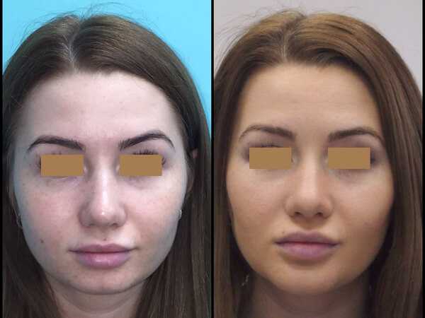 Сразу же после контурной пластики возник легкий отек тканей, визуализировались и зоны входа канюли. Также могла наблюдаться легкая асимметрия: визуально казалось, что одна сторона чуть объемнее, нежели другая. Но не стоит переживать: это все временно. Через 3-4 дня все выровнялось, от отека не осталось и следа, рассосались и небольшие гематомы.