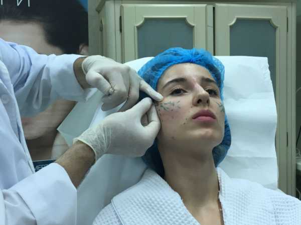 Но теперь к делу. Контурная пластика скул начинается с предварительной подготовки лица: кожа в зоне скул очищается и обрабатывается антисептиком, далее схематически обозначаются точки входа канюли с филлером. В моем случае было 2 точки входа: в средней зоне лица и на виске.