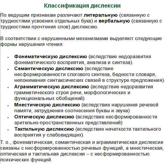 Классификация и основные формы дислексии