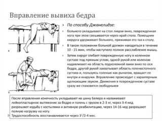 В случаях, когда вышеуказанный тип перелома сопровождается вывихом бедра, в первую очередь специалистам необходимо вернуть его в нормальное положение. Делается это под наркозом, который может быть как местным, так и общим, в зависимости от сложности ситуации. И только после вправления бедра больному накладывают шину или помещают его под скелетное вытяжение.