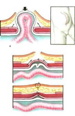 Поэтому под воздействием различных провоцирующих факторов, а также при неправильном сопоставлении краев раны, возникает послеоперационная грыжа.