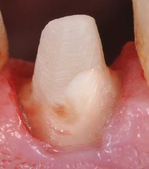 - отсутствие коронки зуба во фронтальной части;