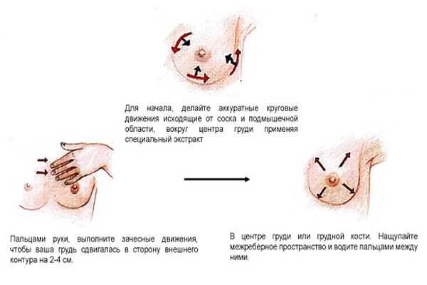Корректирующий массаж делают руками. Он состоит из трех движений. Первое движение делают указательным пальцем. Им в течение 2 минут обводят грудь по окружности. Второе движение делают ладонью руки. Ей, поглаживая, водят по коже в направлении от соска до ключицы. Третье движение делают двумя руками. Одной рукой поддерживают грудь снизу, пальцами другой руки похлопывают ее сверху.